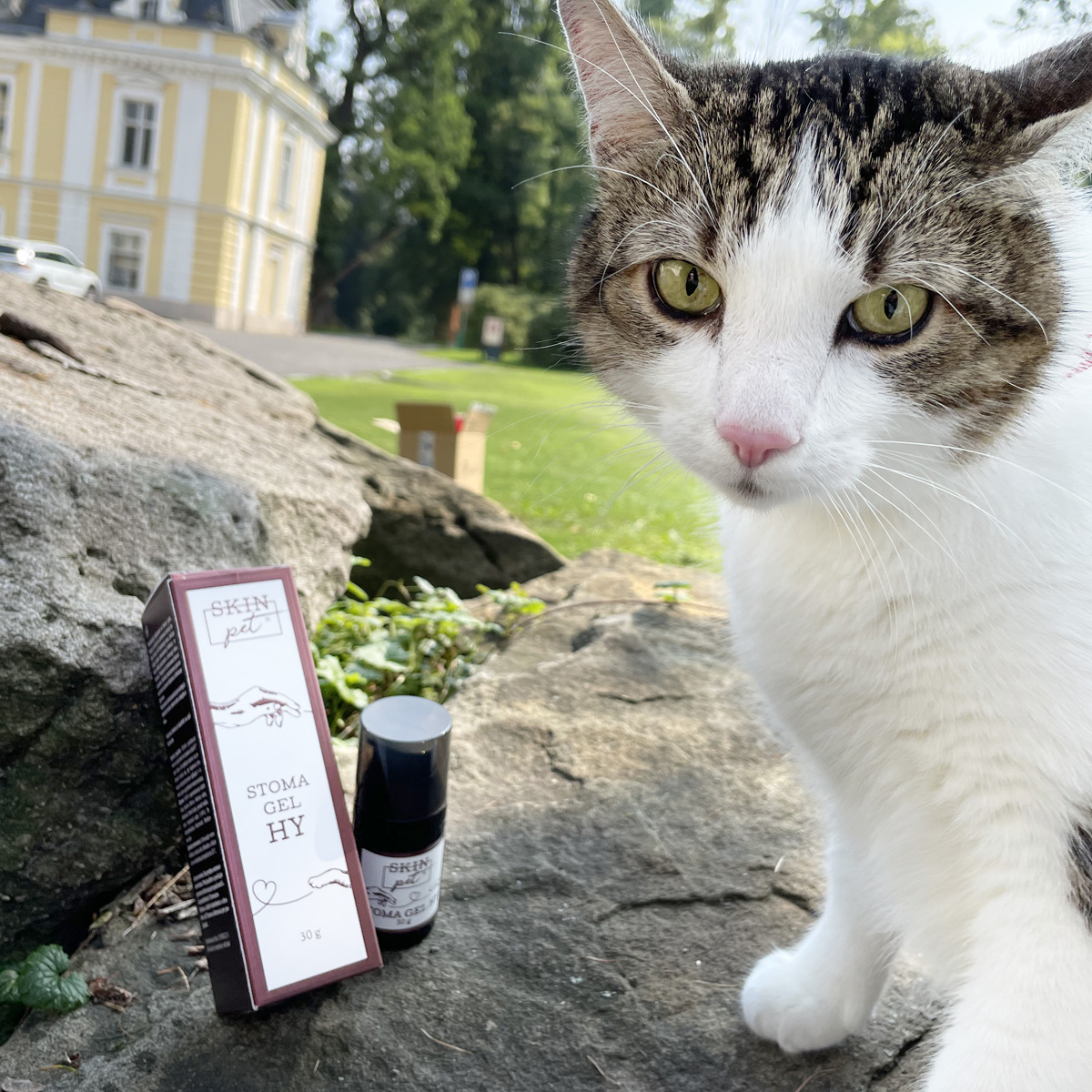 Jako první pomoc nasaďte při zánětu dásní nebo jiných potížích v dutině ústní antiseptický a protizánětlivý SkinPET® Stoma Gel HY s kyselinou hyaluronovou. Tlumí akutní zánět, zmírňuje bolest i otok, zastavuje krvácení, a díky kyselině hyaluronové podporuje rychlejší hojení. Gel při aplikaci nestéká, neštípe, nedráždí a jeho aplikace je pro kočku naprosto bezbolestná. Postižené místo potírejte gelem 3-4x denně až do vymizení příznaků.